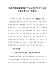 旗委办副主任2025年度民主生活会个人对照检查材料(带案例)根据旗委关于召开2025年度民主生活会的统一安排部署,本人在会前系统深入学习了习近平新时代中国特色社会主义思想,全面学习领会了党的二十届三中、四中全会精神和习近平总书记对内蒙古系列重要讲话重要指示精神,并紧扣本次民主生活会主题,积极参加了旗委办公室组织的集中学习研讨。同时,本着对组织、对同志、对自己高度负责的态度,我与其余班子成员、分管科室负责同志以及基层干部群众代表广泛开展了谈心谈话,真诚征求意见建议,并在此基础上,对照“五个带头”的具体要求,深入查摆自身存在的问题,深刻剖析问题根源,明确了今后的努力方向和整改措施。现将个人对照检查...