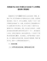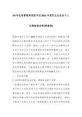 XX市应急管理局党组书记2025年度民主生活会个人对照检查材料(带案例)根据市委关于召开2025年度民主生活会的统一部署,我严格按照会议主题和要求,在会前深入学习了习近平新时代中国特色社会主义思想、党的二十届三中、四中全会精神以及习近平总书记关于应急管理和作风建设的重要论述。通过参加党组理论学习中心组集中学习研讨、与班子成员及分管单位负责同志开展谈心谈话XX人次、书面征求基层单位和干部群众意见建议XX条,为开好这次民主生活会奠定了坚实的思想基础。下面,我紧扣主题,对照5个方面内容,深入查摆自身存在的问题,深刻剖析原因,并明确整改方向。一、存在的问题(一)在带头强化政治忠诚、提高政治能力方面一是...