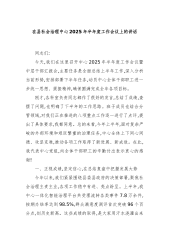 在县社会治理中心2025年半年度工作会议上的讲话同志们:今天,我们在这里召开中心2025年半年度工作会议暨中层干部汇报会,主要任务是全面总结上半年工作,深入分析当前形势,安排部署下半年任务,动员中心全体干部职工进一步统一思想、提振精神,确保圆满完成全年各项目标。刚才,各科室负责同志都作了很好的发言,总结了成绩,查摆了问题,也明确了下半年的工作思路。班子成员也结合分管领域,对我们正在推进的八项重点工作逐一进行了点评,提出了具体要求,我都同意。总的来看,今年上半年,面对复杂严峻的外部环境和艰巨繁重的治理任务,中心全体上下同心同德、攻坚克难,推动各项工作取得了新进展、新成效。在此,我代表中心党组,向...
