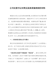 公司纪委书记对照反面典型案例剖析材料根据本次民主生活会的安排部署,会议要求班子成员需对照反面典型案例进行深刻剖析。我重点学习了关于公司党支部书记、总经理和销售经理问题的通报。该案例性质严重,教训深刻,对我个人触动很大。身为国有企业的党员领导干部和业务骨干,本应是遵规守纪的表率,却在正风肃纪的高压态势下,依然心存侥幸,顶风违纪,最终受到严肃处理,令人警醒,发人深思。根据要求,我将结合自身思想和工作实际,对该案例进行深度剖析,并举一反三,深刻查摆自身存在的差距和不足。一、对案例的深刻认识与警示通过对违纪案例的深入学习和反思,我获得了三点刻骨铭心的认识。这不仅是对当事人的批判,更是对我自身乃至公司全...