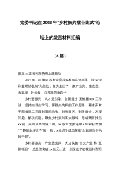 (8篇)党委书记在 2023 年“乡村振兴擂台比武”论坛上的发言材料汇编