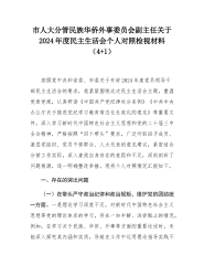 机关党支部书记2024年度组织生活会、民主生活会个人对照检查材料根据上级党组织关于民主生活会的要求,我认真学习并深入领会习近平新时代中国特色社会主义思想,全面把握习近平总书记关于机关党建工作的重要论述,仔细研读《党章》、《关于新形势下党内政治生活的若干准则》、《中国共产党党内监督条例》,以及党中央关于民主生活会的相关要求。通过一系列学习,我进一步夯实了思想基础,提高了政治觉悟,增强了党性修养,促使自身在思想认识上“更上一层”,在党性锤炼上“更进一步”。紧扣“四个带头”的要求,我坚持以“三个摆进去”为衡量标准,广泛开展谈心谈话,积极与班子成员、中层干部、党员代表、群众代表进行沟通交流,共收集到意...