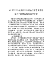 XX区2022年度民主生活会征求意见理论学习方面整改落实情况汇报