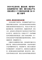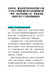 以身作则、廉洁自律方面存在的问题15篇与2024年围绕“维护党中央权威和集中统一领导、践行宗旨服务人民、求真务实狠抓落实”等六个方面对照检查材料