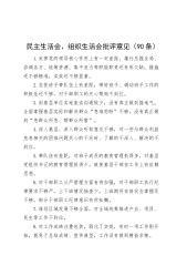 民主生活会、组织生活会相互批评意见(90条)问题清单20250331