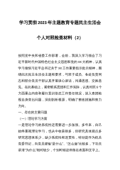 学习贯彻2023年主题教育专题民主生活会个人对照检查材料(2)