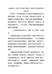 经验材料:打造五个过硬干部队伍,推进人民法院审判能力现代化近年来,XX法院坚持以XJP新时代中国特色社会主义思想为指导,以打造“五个过硬”的政法队伍为目标,按照最高人民法院队伍建设、市委干部队伍建设部署要求,提升思想方法,转变工作方法,履职尽责,担当作为,创造性地开展工作,“五个过硬”干部队伍建设顺利推进并取得了创新突破。一、以党建统领法院工作,推进“五个过硬”队伍建设推进落实全面从严治党主体责任。制定了党组《关于落实全面从严治党主体责任的实施意见》、《XX年度落实全面从严治党主体责任清单》,明确了党组、党组书记、党组成员的从严治党主体责任,把从严治党工作任务,分解到班子成员和相关职能部门,推...