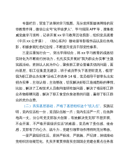 专题栏目,营造了浓厚的学习氛围。充分发挥新媒体网络的宣传教育作用,微信公众号”化学追梦人”、学习强国APP等,搜集权威党媒学习资料,记录开展xx学习教育活动剪影,组织党员观看《中共xx公开课》、《初心系列》微动漫等影视作品以及红色电影,积极参观红色纪念馆,不断提升党员干部党性修养。三是注重知行合一。突出学用结合,将xx学习教育的成效切实转化为不断前行的动力,扎扎实实开展好”我为群众办实事”主题实践活动。坚持以人民为中心,聚焦职工群众普遍关切的问题,面向基层、职工征集意见建议,班子成员带头下基层听意见,梳理”我为职工群众办实事”活动工作清单14项,党员领导干部带头出实招办实事,主动认领,主动整改...