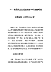 2022年度民主生活会班子6个方面对照检查材料(全文9314字)