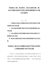 市直机关工委、机关单位、局办公室党支部、镇2024年落实全面从严治党主体责任情况报告【4篇文】供参考