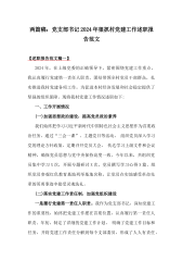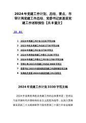 党支部2024年党建工作计划、党建工作要点、述职评议会发言稿、局机关党建工作总结、情况述职报告、调研报告(八篇)汇编