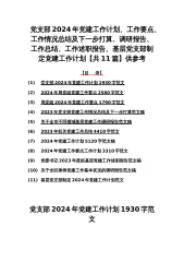 党支部2024年党建工作计划、工作要点、工作情况总结及下一步打算、调研报告、工作总结、工作述职报告、基层党支部制定党建工作计划【共11篇】供参考
