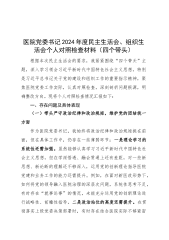 医院党委书记2024年度民主生活会、组织生活会个人对照检查材料(四个带头,纪律规矩团结统一、党性纪律作风、清正廉洁、从严治党,检视剖析,发言提纲)20250305