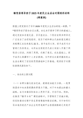 XX镇委员会领导班子2025年度民主生活会对照检查材料(五个带头)根据上级党委关于召开2025年度民主生活会的统一部署,XX镇党委领导班子紧扣会议主题,扎实开展会前准备工作。班子成员通过集中学习与个人自学相结合的方式,深入学习了习近平新时代中国特色社会主义思想、党的二十届三中、四中全会精神及中央八项规定精神,累计组织理论学习中心组集中研讨12次。班子成员之间、班子成员与分管部门负责同志、与所在支部党员代表之间深入开展谈心谈话110余人次。通过线上征集、线下座谈等方式,广泛征求各级党组织和干部群众意见建议,共梳理汇总各类意见建议58条。在此基础上,班子成员认真撰写个人发言提纲,为高质量开好本次民...