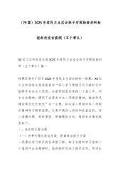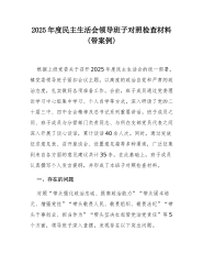 XX镇2025年度民主生活会班子对照检查材料(带案例)根据上级党委关于召开2025年度民主生活会的统一部署,XX镇党委领导班子紧扣会议主题,以高度的政治自觉和严肃的政治态度,扎实做好各项准备工作。会前,班子成员通过党委理论学习中心组集中学习、个人自学等方式,深入研读了党的二十届三中、四中全会精神及习近平总书记系列重要讲话。班子成员之间、班子成员与分管部门负责同志、与所在支部党员代表之间深入开展了谈心谈话,累计谈话40余人次。同时,通过发放征求意见表、召开座谈会、设置意见箱等多种渠道,广泛征集到来自各方面的意见建议共计35条。在此基础上,班子成员认真撰写个人发言提纲,并形成了本班子对照检查材料。...