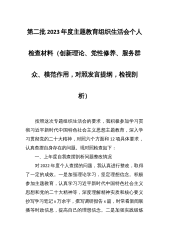 第二批2023年度主题教育组织生活会个人检查材料(创新理论、党性修养、服务群众、模范作用,对照发言提纲,检视剖析)