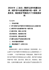 2024年围绕“践行宗旨、服务人民,求真务实、狠抓落实,维护党中央权威和集中统一领导,以身作则廉洁自律”等新的6个方面材料2篇文【供借鉴】