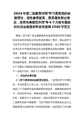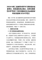 2024年第二批教育对照“学习贯彻党的创新理论,党性修养提高,联系服务群众情况,发挥先锋模范作用”等4个方面专题组织生活会检查材料发言提纲2540字范文