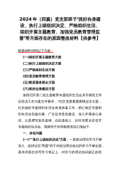 2024年{四篇}党支部班子“抓好自身建设、执行上级组织决定、严格组织生活、组织开展主题教育、加强党员教育管理监督”等方面存在的原因整改材料【供参考】