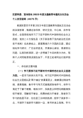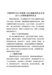 分管领导2023年度第二批主题教育民主生活会个人对照检查材料范文根据市委组织部、市主题教育办关于开好主题教育专题民主生活会统一安排部署,我紧紧围绕主题教育总体目标,聚焦主题教育专题民主生活会主题,立足工作实际,结合会前学习研讨、谈心谈话等情况,对照规定的6个方面,深入查找差距,深刻进行党性分析,明确了今后的努力方向。现将个人对照检查情况报告如下。一、围绕6个方面对照检查情况第二批主题教育开展以来,我牢牢把握“学思想、强党性、重实践、建新功”总要求,坚持把“学思想”作为第一位的任务和贯穿始终的主线,坚持边学习、边对照、边检视、边整改,把问题整改贯穿主题教育始终,把抓好检视整改作为破解难题、推动高...