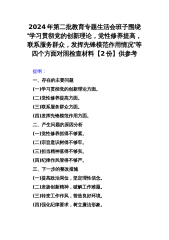 2024年围绕“维护党中央权威和集中统一领导,求真务实、狠抓落实,以身作则廉洁自律”等新的六个方面对照检查材料与全面围绕“践行宗旨服务人民、求真务实狠抓落实、以身作则廉洁自律、履行从严治党政治责任”等“六个方面”对照检查材料【2篇】2024年围绕“维护党中央权威和集中统一领导,求真务实、狠抓落实,以身作则廉洁自律”等新的六个方面对照检查材料范文提纲一、存在的问题(一)学习贯彻习近平新时代中国特色社会主义思想方面(二)维护党中央权威和集中统一领导方面(三)践行宗旨、服务人民方面(四)求真务实、狠抓落实方面(五)以身作则、廉洁自律方面(六)履行全面从严治党政治责任方面第二批主题教育开展以来,我坚持...