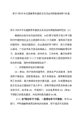 班子2023年主题教育专题民主生活会对照检查材料38篇班子2023年主题教育专题民主生活会对照检查材料范文(1)根据此次民主生活会的安排,xxD委D组班子深入学习新时代中国特色社会主义思想和D的二十大精神,领导班子坚持问题导向,强化问题意识,在认真组织学习研讨、深入开展谈心谈话、广泛征求各方意见的基础上,对照文件明确的理论学习、政治素质、能力本领、担当作为、工作作风、廉洁自律等六个方面和提出的“十二个方面”的具体要求深入查找领导班子存在的问题。现作对照检查报告如下:一、对照检查存在的主要问题xx(单位)班子坚持问题导向,坚持从严从实标准,坚持把班子摆进去、把职责摆进去、把工作摆进去,紧密联系思...