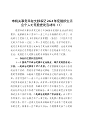 市机关事务局党支部书记2024年度组织生活会个人对照检查发言材料(1)根据市机关事务局党支部召开2024年度组织生活会的相关要求,我积极投身于党的二十届三中全会精神的深入学习,系统研习了党规以及《中国共产党章程》《条例》《中国共产党支部工作条例(试行)》等一系列党内法规。在学习过程中,我对自身肩负的责任与使命有了更为深刻的领悟,也愈发清晰地认识到自己在思想层面和工作实践中存在的诸多不足之处。在此,我将把个人对照检查的详细情况向大家进行汇报。一、存在的主要问题及表现(一)围绕严守政治纪律和政治规矩,维护党的团结统一方面。一是政治纪律学习浮于表面。尽管积极踊跃地参与各类政治学习活动,然而在学习政治...