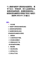 个人围绕“检视学习贯彻党的创新理论,看学了多少、学得怎样,有什么收获和体会、检视党性修养提高,检视联系服务群众,检视发挥先锋模范作用情况”等四个检视方面材料2023年【4篇文】