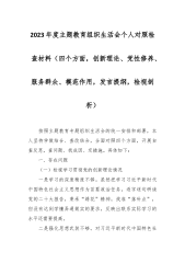2023年第二批教育专题局领导党员干部个人围绕“检视学习贯彻党的创新理论,党性修养提高,联系服务群众,发挥先锋模范作用情况”四个方面析材料(2篇文)