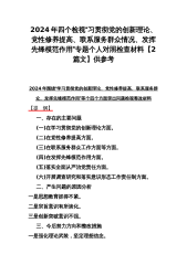 两篇:基层党员检视学习贯彻党的创新理论、党性修养提高、联系服务群众、发挥先锋模范作用情况“四个检视”方面专题个人对照检视检查材料2024年