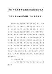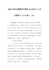 2023年主题教育专题民主生活会班子成员个人对照检查剖析材料(个人发言稿提纲)