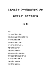 (12篇)各机关领导在“《XX省社会信用条例》贯彻 落实座谈会”上的发言提纲汇编