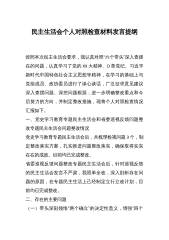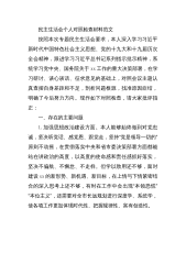 民主生活会个人对照检查材料范文按照本次专题民主生活会要求,本人深入学习习近平新时代中国特色社会主义思想、党的十九大和十九届历次全会精神,跟进学习习近平总书记系列指示批示精神,系统学习党中央、国务院关于xx工作的重大决策部署,在学习研讨、谈心谈话、征求意见的基础上,对照会议主题认真查摆自身差距和不足,剖析问题根源,找准原因症结,明确了今后努力方向。现作如下对照检查,请大家批评指正:一、存在的主要问题1.加强思想政治建设方面。本人能够始终做到对党忠诚,坚决听党话、感党恩、跟党走,坚持“党是领导一切的”原则不动摇,在贯彻落实中央和省市委决策部署方面都能站在讲政治的高度,以高度的使命感和责任感抓好落实...