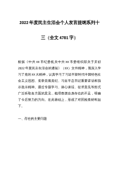 2022年度民主生活会会前集中学习研讨发言提纲、主持词参考汇编(3篇)