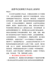 县委书记在财税工作会议上的讲话同志们:今天召开全县财税工作会议,主要是总结表彰2019年财税工作,分析当前财税形势,做好今年工作的谋篇布局,动员全县财税战线干部坚定信心,咬定目标,团结奋进,为加快实现经济强县梦、全面小康梦、撤县设市梦提供更加强劲稳健的财力支撑。今天的会议规模很大,规格很高,全县所有在家的处级领导,县委办、县政府办负责人,财政、税务全体干部职工和乡镇党政主要负责人近×人参加这次会议,充分说明县委、县政府高度重视财税工作,希望通过这次会议跟大家加油鼓劲,推动全县的财税工作再创新的辉煌。刚才,国税、地税、财政部门的负责同志分别作了很好的工作报告,总结成绩很客观,分析形势很到位,工作...