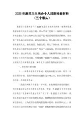 XX街道综合行政执法队队长2025年度民主生活会个人对照检查材料(五个带头)根据XX区纪委、区委组织部关于召开2025年度党员领导干部民主生活会的通知要求,我紧扣本次民主生活会主题,在深入学习领会党的二十届三中、四中全会精神和习近平总书记重要讲话精神,特别是关于作风建设的重要论述的基础上,通过群众提、自己找、上级点、互相帮等多种方式,广泛征求意见建议,并与班子成员、分管领域同志深入开展谈心谈话。在此基础上,我严格对照“五个带头”的具体要求,紧密联系个人思想、工作和生活实际,深入查摆自身存在的突出问题,深刻剖析问题产生的根源,并明确了今后的努力方向和整改措施。现将个人对照检查情况报告如下。一、存...