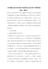 XX调查队党支部2025年度组织生活会班子对照检查材料(精品)根据上级党组织关于召开2025年度组织生活会的部署要求,XX调查队党支部班子紧紧围绕会议主题,深入学习贯彻习近平新时代中国特色社会主义思想和党的二十届四中全会精神,扎实开展深入贯彻中央八项规定精神学习教育,广泛征求意见建议,深入开展谈心谈话,认真查摆存在问题,深刻剖析问题根源,明确整改方向措施。现将支部班子对照检查情况报告如下。一、存在的问题(一)对照加强理论武装方面一是理论学习系统规划不科学。支部班子在组织党员学习习近平新时代中国特色社会主义思想过程中,存在重数量轻质量、重形式轻实效的倾向,学习计划制定不够科学合理,学习内容安排较...