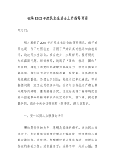 在XX镇2025年党员领导干部民主生活会暨以案促改促治专题民主生活会上的总结讲话(精品)同志们:刚才,我们召开了一次高质量、有深度的民主生活会。会议紧扣学习贯彻党的创新理论、锤炼党性修养、践行宗旨使命的主题,严格对照“五个带头”的具体要求,并结合典型案例进行了深刻的以案促改促治专题剖析。班子成员之间本着对党、对事业、对同志、对自己高度负责的态度,开诚布公、坦诚相见,深入开展了批评和自我批评。大家的发言既有严肃的自我剖析,也有真诚的相互提醒,问题查摆深入,原因剖析透彻,整改方向明确,达到了统一思想、深化认识、增进团结、共同提高的预期目的,也实现了“团结—批评—团结”的良好效果。县委组织部和县纪委...