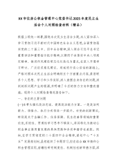 XX市住房公积金管理中心党委书记2025年度民主生活会个人对照检查材料(精品)