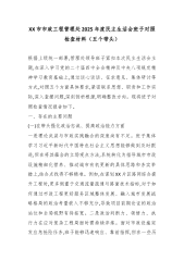 XX市图书馆领导班子2025年度民主生活会对照检查材料(五个带头)根据上级统一部署,围绕本次民主生活会主题,馆领导班子在深入学习研讨、广泛征求意见、坦诚谈心谈话的基础上,紧扣学习贯彻习近平新时代中国特色社会主义思想,特别是党的二十届四中全会关于健全全面从严治党体系、推进自我革命的重要部署,以及深入贯彻中央八项规定精神学习教育的要求,紧密联系班子思想、工作、作风实际,深入查摆问题,深刻剖析根源,明确整改方向。现将对照检查情况报告如下。一、存在的主要问题班子对照本次民主生活会主题,重点围绕五个方面,认真查摆了存在的差距和不足。(一)在带头强化政治忠诚、提高政治能力方面一是理论武装的深度与实践转化的...