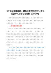 XX集团党委委员、副总经理2022年度民主生活会对照检查材料个人(0547字)对照党的XX大精神和党章党规党纪,结合自身情况进行了认真查摆、剖析。现将我个人整改完成情况、存在的主要问题和原因剖析、下一步整改方向及措施汇报如下。一、整改落实完成情况2022年,我结合党史学习教育专题民主生活会查摆出:“两个确立”内化于心、外化于行未完全实现统一,政府要求公司配合处置XX悦湖湾项目社会稳定问题在思想上想不通,办理项目融资存在斗志和韧性不强,在规划设计项目重视规范要求缺乏考虑便民性,与员工在思想政治和民族团结进步创建工作方面讨论较少等五个方面问题,一年来,我认真逐项整改,完成情况如下:(一)针对“在增...