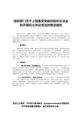 组织部门关于上报基层党组织组织生活会和开展民主评议党员的情况报告为深入学习x、x精神,引领广大党员干部牢固树立“四个意识”,坚定“四个自信”,切实提升基层党组织组织力,按照中央、省委关于召开x年度基层党组织组织生活会和开展民主评议党员的总体要求,x各级党组织以求真务实的态度,坚持问题导向,深刻剖析根源,明确整改方向,陆续召开了专题组织生活会和民主评议党员工作。现将相关情况报告如下。一、基本情况按照中央、省委统一部署,切实以实际行动落实x重要指示精神,落实推进x基本要求,x各级党组织精心组织学习x和x精神、广泛征求意见、深入查摆问题、认真撰写材料、开展党员民主评议。截至目前,x个基层党支部召开了...