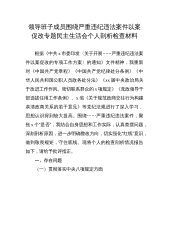 领导班子成员围绕严重违纪违法案件以案促改专题民主生活会个人剖析检查材料根据《中共x市委印发〈关于开展……严重违纪违法案件以案促改的专项工作方案〉的通知》文件精神,我重新对《中国共产党章程》《中国共产党纪律处分条例》《中华人民共和国公职人员政务处分法》《xx届中央政治局关于改进工作作风、密切联系群众的x项规定》《党政领导干部选拔任用工作条例》、x省《关于规范政商交往行为构建亲清政商关系的若干意见》等党纪法规进行了深入学习,思想认识得到较大提高。围绕……严重违纪违法案件,聚焦x个“是否”,我结合自身思想和工作实际,认真查摆问题,深刻剖析原因,进一步明确整改方向,切实强化“红线”意识,做到敬畏规矩,...