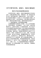 关于开展“转作风、提能力、强担当”解放思想大讨论活动的情况总结自开展“转作风、提能力、强担当”解放思想大讨论活动以来,交通住建局精心组织、周密安排,第一时间成立领导小组,制定实施方案、明确任务目标、卡实工作责任,班子成员带头围绕X个方面XX个突出问题深入查摆,并通过组织学习研讨、召开务虚会议、建立整改台账等系列举措,保障活动开展扎实有效。现将具体情况总结如下:一、坚持问题导向,筑牢思想信念根基全局紧紧围绕工委管委工作部署,在个人自学的基础上,利用主题党日、党员电教日、“三会一课”等,组织开展集体学习,认真学习党的二十大报告和党章,学习习近平总书记重要指示精神以及加快X综合试验区高质量发展动员大...