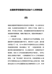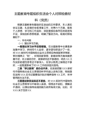 主题教育专题组织生活会个人对照检查材料根据党支部安排,我认真围绕本次组织生活会主题,深入学习党的XX大报告、党章、XXX总书记系列重要讲话精神、主题教育制定读物等,在筑牢思想根基的基础上,深入开展谈心谈话,广泛征求意见建议,对照XXX总书记的号召和要求,对照党员义务,联系思想和工作实际,从严从实盘点和检视自身存在的突出问题,剖析问题根源,制定整改措施,明确了今后的努力方向。现将个人对照检查情况报告如下。一、对照查摆突出问题(一)理论学习方面一是学习不够系统深入。在学习贯彻党的XX大精神上,虽然自学了好多遍,但总感觉在学懂、弄通、做实上还有一些差距,对党的理论和路线方针,特别是对XXX总书记关于...