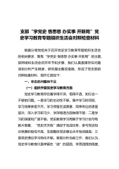 支部“学党史悟思想办实事开新局”党史学习教育专题组织生活会对照检查材料根据分局党组关于召开党史学习教育专题组织生活会的相关要求,聚焦“学党史悟思想办实事开新局”的主题,按照组织生活会召开环节和步骤,我们认真查摆存在问题深刻分析产生根源,研究提出整改措施,形成了党支部的对照检查材料,现作汇报如下:一、存在的问题和不足(一)组织开展党史学习教育方面党史学习教育存在着学得不深、悟得不透、知行合一不够的问题。一是学习的主动性不够。集中学习时间短,学习效果参差不齐。学习停留在读原著、简单传达的表面层次,深入学习研习少,学深悟透方面做得不够;二是学习的深度和广度不够。党史教育学习局限于学习计划与电教片观看...