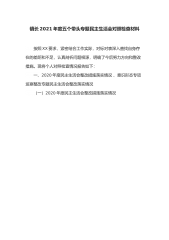 根据镇机关支部《关于召开2021年度支部组织生活会和开展民主评议党员的方案》要求,我紧扣主题,通过参加机关党支部学习和个人自学的方式,认真学习了习近平新时代中国特色社会主义思想、党的十九届六中全会精神、习近平总书记对xx做出的重要讲话和指示精神等内容。会前,我严格对照习近平总书记关于严肃党内生活的重要指示精神,对照党章党规党纪,对照初心使命,结合个人思想和工作实际,深入开展了谈心谈话、广泛征求了班子成员及干部群众的意见建议、认真查摆了自身存在的问题,在此基础上认真撰写了个人发言提纲。一、上年度组织生活会问题整改情况2020年度专题组织生活会后,我通过开展谈心谈话、征求意见、自身查摆出等方式,对...