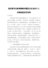 某纪委书记教育整顿专题民主生活会个人对照检查发言材料各位同志:纪检监察干部队伍教育整顿以来,在学习教育环节,我坚持以学铸魂,学有所得、思有所悟,自觉接受了刻骨铭心的革命性锻造和深入灵魂的精神洗礼;在检视整治环节,围绕“六个方面”,对照“六个是否”,深刻进行了检视反省。按照上级纪检监察机关《关于召开纪检监察干部队伍教育整顿专题民主生活会的通知》要求,我聚焦此次专题民主生活会主题,在认真学习研讨、广泛征求意见、深入交心谈心的基础上,坚持把自己摆进去、把事情摆进去、把问题摆进去,全面对标查问题,深刻剖析找根源,严肃进行党性分析,认真制定整改措施,以达到巩固提升之效果。现将有关情况予以汇报,不对不足之...