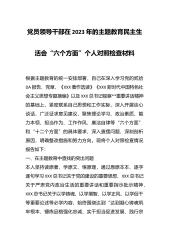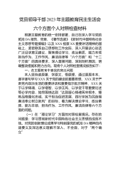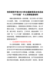 党员领导干部2022年民主生活会对照检查材料个人发言提纲(全文4905字)根据市纪委机关、市委组织部关于开好民主生活会的通知要求,我重点学习了指定内容,提升思想认识,与班子成员交心谈心,征求系统干部职工和市场主体的意见,为开展党性分析奠定了扎实的基础。针对上半年党史学习教育民主生活会上个人对照查摆出的问题,我严格按照整改方案,建立了整改台账,逐项进行整改销号,目前已全面完成了各项整改任务。同时,紧扣此次民主生活会的主题,我结合工作和思想实际,摆正位置,深入查摆在“六个带头”方面存在的问题,明确整改措施,认真撰写对照检查材料。现将对照检查情况汇报如下,请同志们批评指正。一、存在问题及具体表现 ...