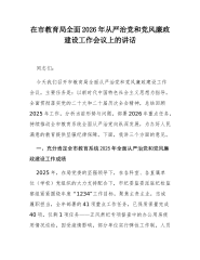 驻市纪检监察组组长在市委党校2025年党风廉政建设工作会议上的讲话同志们:今天,我们召开市委党校2025年党风廉政建设工作会议,主要任务是深入学习贯彻党的二十大精神,全面落实中央纪委、省纪委全会部署,总结成绩、分析形势、明确任务,动员全市纪检监察干部以永远在路上的坚韧和执着,推动全面从严治党向纵深发展,为奋力谱写中国式现代化新篇章提供坚强保障。下面,我讲三个方面意见。一、深刻把握全面从严治党新形势新任务,切实增强推进党风廉政建设的政治自觉(一)准确研判反腐败斗争阶段性特征,始终保持清醒头脑。当前,反腐败斗争取得压倒性胜利并全面巩固,但形势依然严峻复杂。从我市查处的案件看,腐败问题呈现四个新特点...